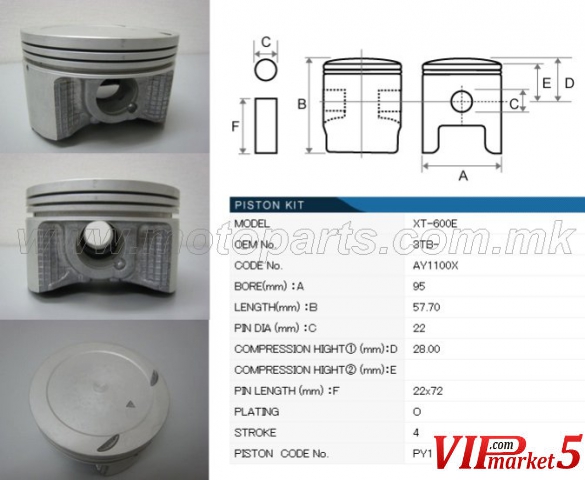 Piston kit Клип Yamaha XT600 комплет со карики, болц и осигурачи TKRJ ® Made in Japan STD 0.50 1.00